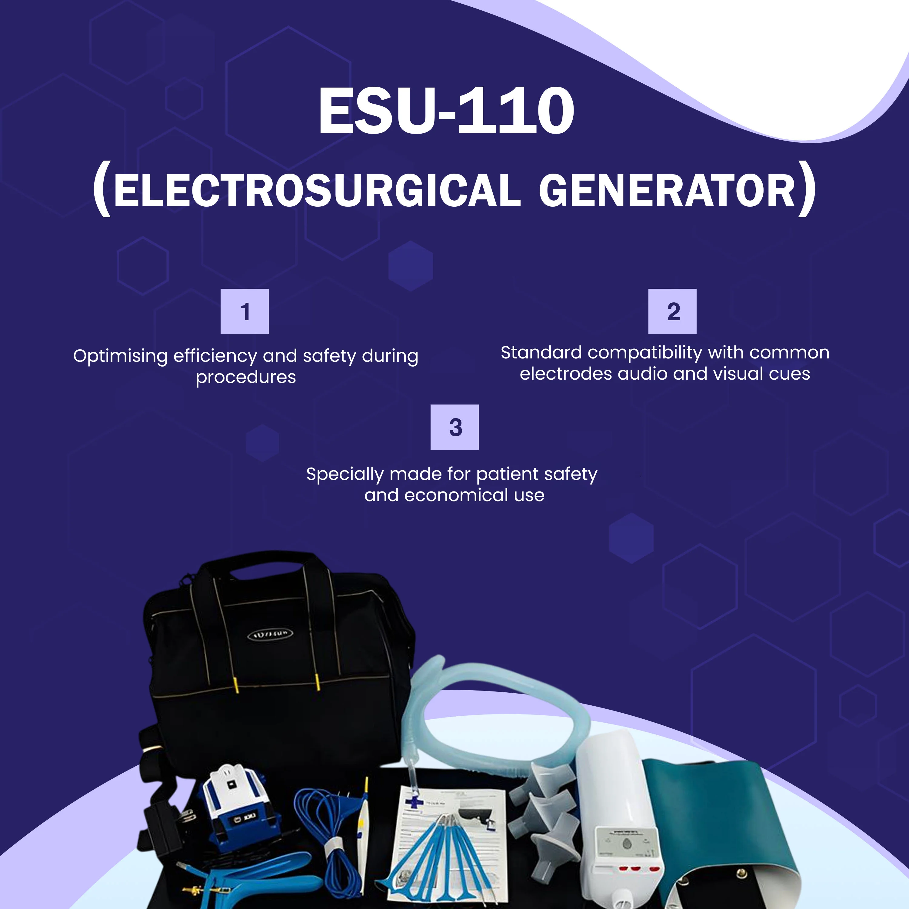 The ESU-110 is a compact, reliable electrosurgical generator designed to deliver controlled cutting and coagulation power with precision and safety.